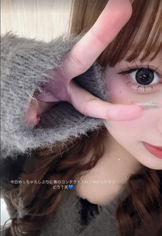 青いカラーコンタクトレンズを着用した画像を公開しました。