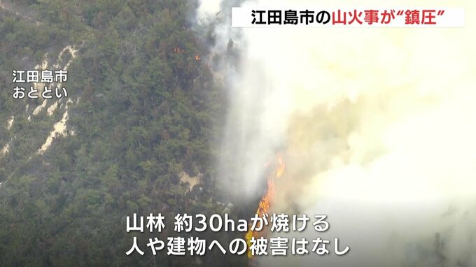 19日、広島県江田島市で起きた山火事について、県危機管理課は火の拡大のおそれがなくなり「鎮圧」したと発表しました。