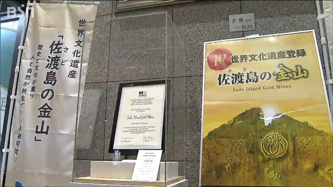 「佐渡島の金山」が世界遺産に登録されたこと示す認定書が20日、新潟県庁に展示されました。県庁の1階に展示されたのは「世界遺産一覧表記載認定書」です。【記者リポート】「認定書は県庁の正面玄関を抜けたとこ…