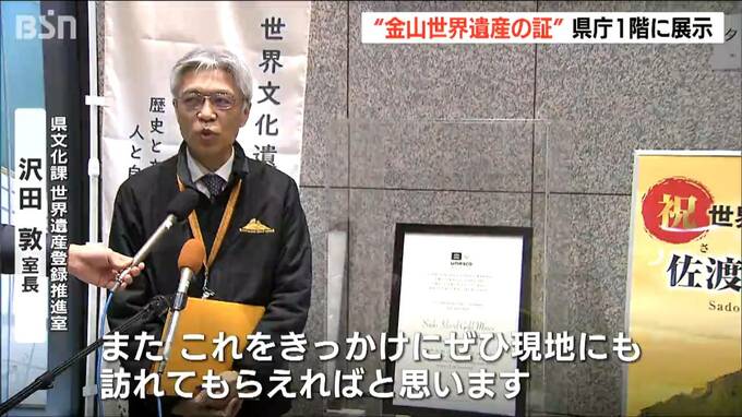 【県文化課世界遺産登録推進室 沢田敦 室長】「佐渡の金山が世界遺産に登録されたことを実感してもらって、またこれをきっかけにぜひ現地にも訪れてもらえればと思います」
