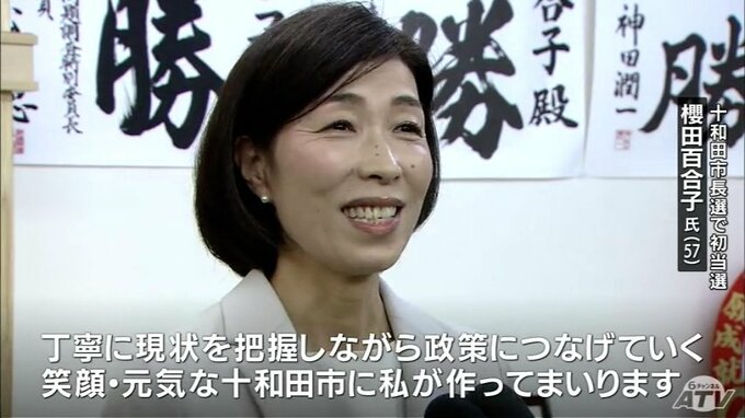 任期満了に伴う青森県の「十和田市長選挙」は、19日に投開票が行われ、前の市議会副議長の櫻田百合子氏が初当選を果たしました。いずれも無所属の新人5人の争いとなった十和田市長選挙では、前の市議会副議長の櫻…
