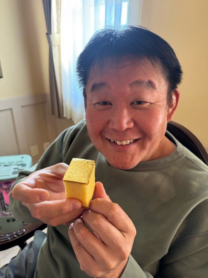 そして「なんかお金持ちになった気分」と、満面の笑みでカステラを手に取る画像を投稿しました。