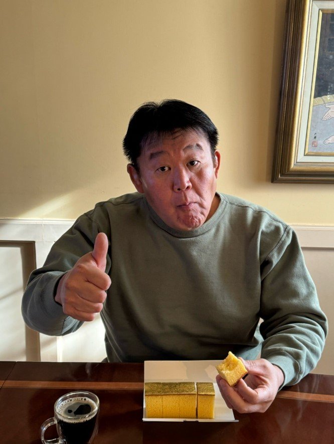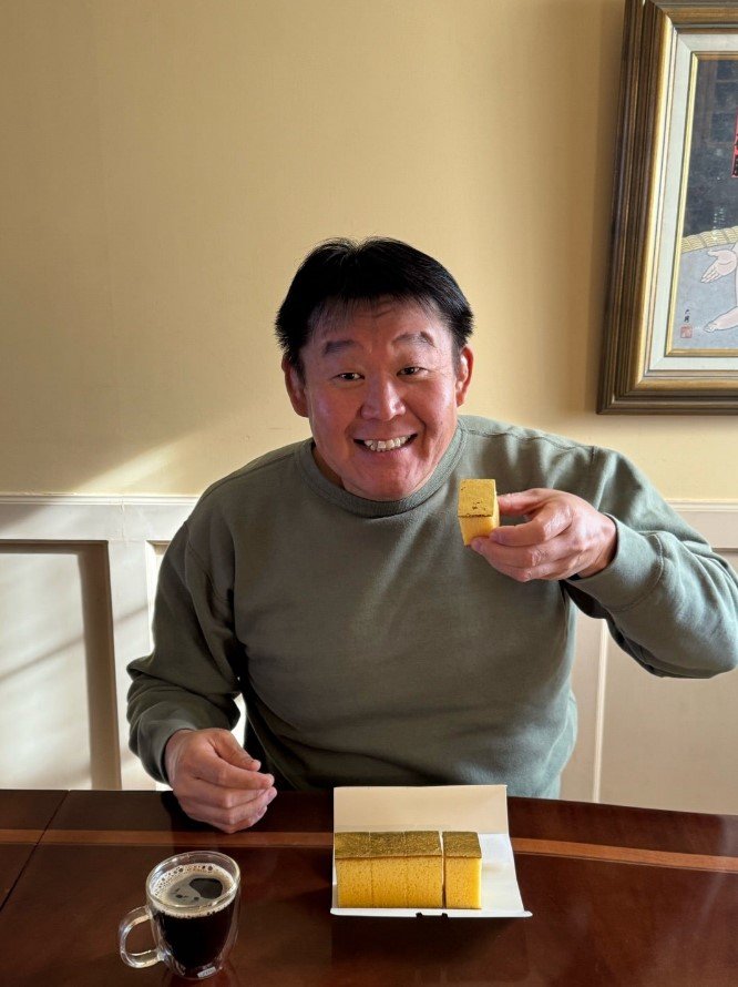 花田虎上さんは「金」と題したブログで、金沢の和洋菓子店の「カステラをいただきました」と、投稿。