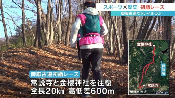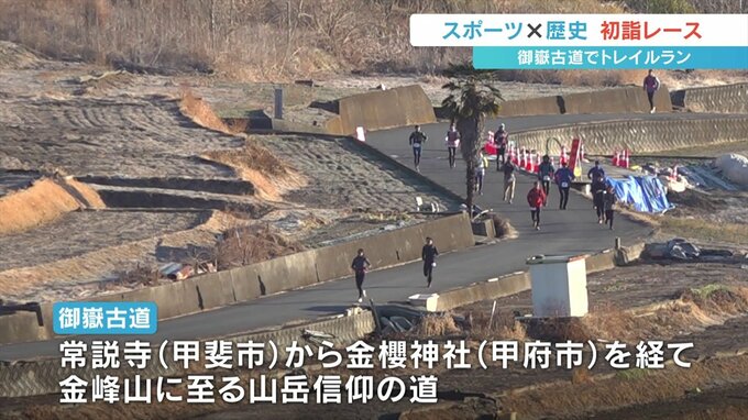 レースはこの道を広く知ってもらおうとトレイルランニングの愛好家らで作る実行委員会が開催したもので、金櫻神社を折り返す全長20㎞、高低差600mのコースで争われます。