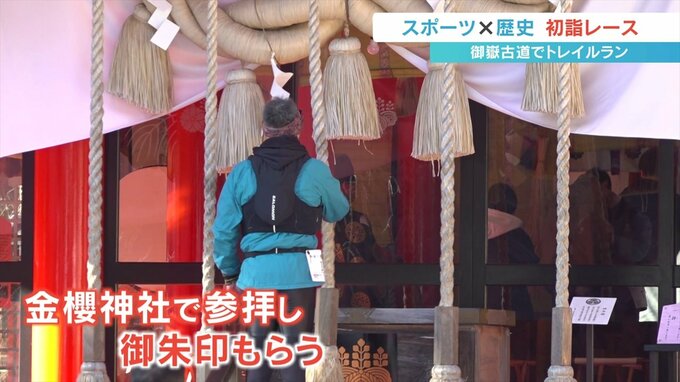 ランナーは金櫻神社でお参りをして御朱印をもらい折り返していきます。