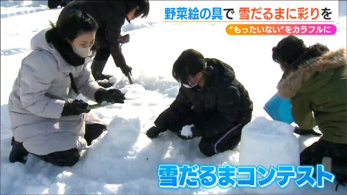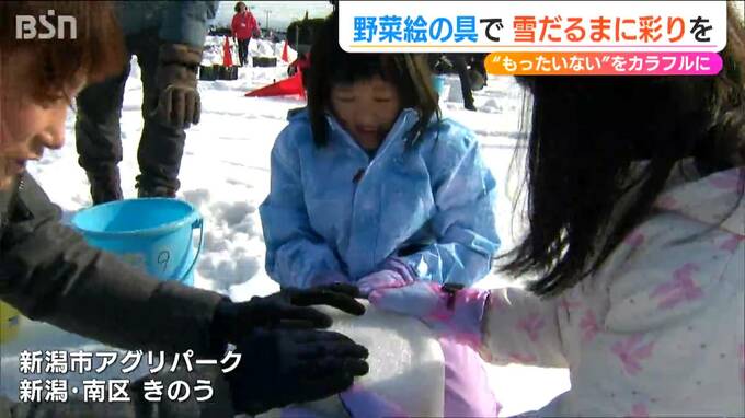 そうした野菜で作った“絵の具”を使って色をつけ、その出来栄えを競うイベント『雪だるまコンテスト』が新潟市・アグリパークで19日に開かれました。