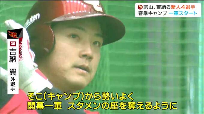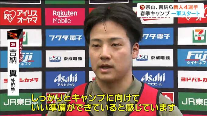 その宗山選手とともにキャンプを一軍で迎えるのが、早稲田大学からドラフト5位で入団した吉納翼選手。大学日本代表にも選出された強打の外野手です。