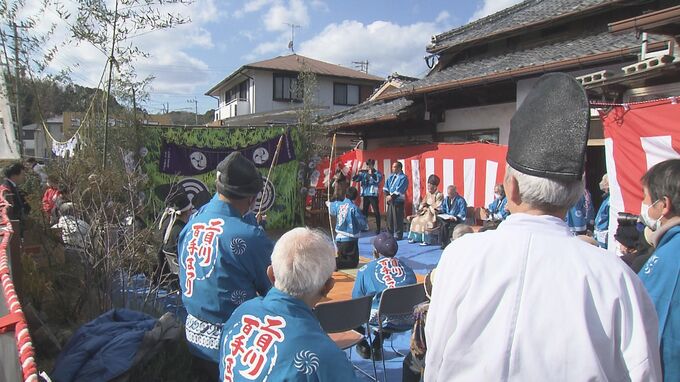保存会のメンバーや地元の人らおよそ30人が20日、当番役の小野隆さん宅に集まりました。百手まつりのメインは的に矢を放ち、その年の吉凶を占う「的矢の儀」です。