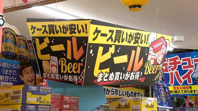 RKB坂本くるみ「福岡市西区にあるメガ・ドンキホーテでは、値上げ前の駆け込み需要に備えて、今月中旬からお酒の特設コーナーを設けているということです」