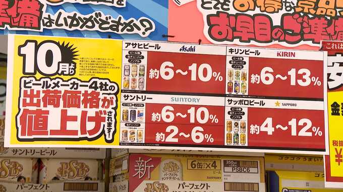 原材料の高騰などを理由に、ビールの大手4社が10月から軒並み値上げします。缶ビールの値上げは実に約14年ぶり。アサヒビールやサントリーは、ビールやチューハイなど店頭想定価格で6~10%引き上げる予定で、ビール1ケースで250~400円程度も変わってきます。