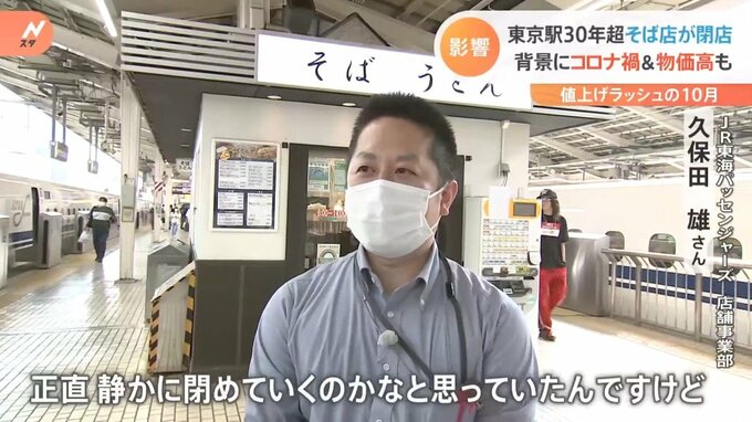 東京駅の東海道新幹線のホームで、30年以上営業してきた立ち食いそば店「東京グル麺」。9月30日、お客さんから聞かれたのが“さみしい”という声。