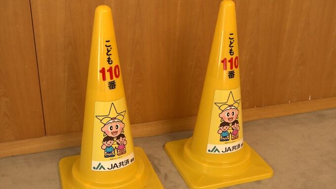 子どもが身の危険を感じた時に駆け込むための「子ども110番の家」に設置してほしいと、JA共済連岡山がセーフティーコーンを岡山県に寄贈しました。