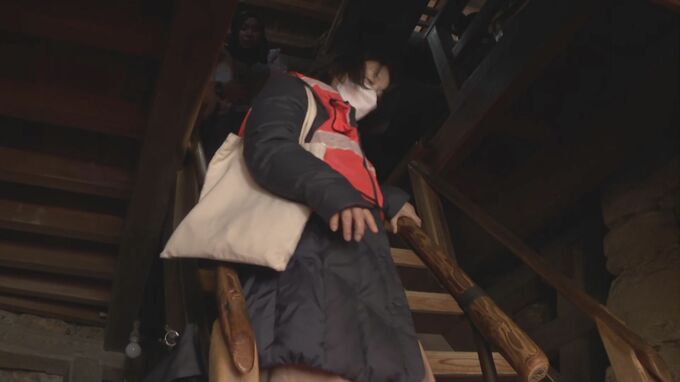 参加した50人余りの消防隊員や犬山城の職員らは、避難経路を確認しながら観光客を安全に誘導したり、消火器や放水銃などを使って消火活動にあたっていました。
