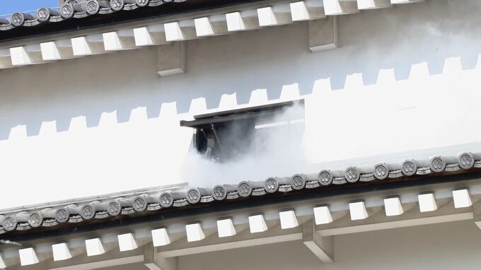 愛知県犬山市の国宝・犬山城で、放火により天守の2階付近から火災が発生したという想定の消防訓練が行われました。