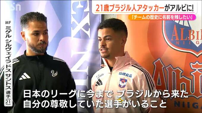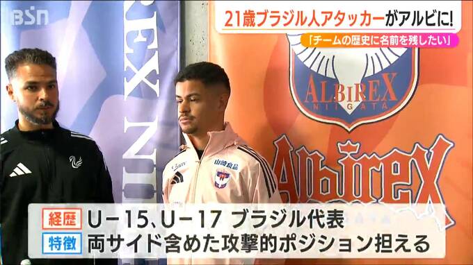 サッカーアルビレックス新潟に加入が内定している新しいブラジル人アタッカーが21日、報道陣の取材に応じ、『チームの歴史に自分の名前を残したい』と意気込みを語りました。