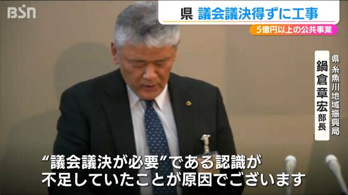 【糸魚川地域振興局 地域整備部 鍋倉章宏 部長】「議会議決が必要である認識が不足していたことが原因でございます」