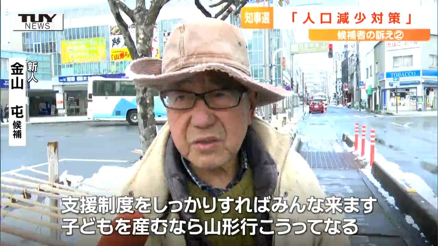 新人 金山屯 候補「支援制度をしっかりすればみんな来ますよ。子どもを産むなら山形行こうってなるんですよ。それがしっかりしてないから、みんな出て行っちゃう。簡単なこと」