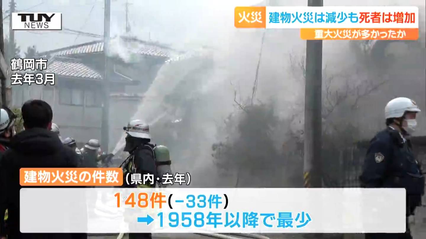 去年、山形県内で発生した建物火災は148件で、1958年以降で最も少なくなったことがわかりました。