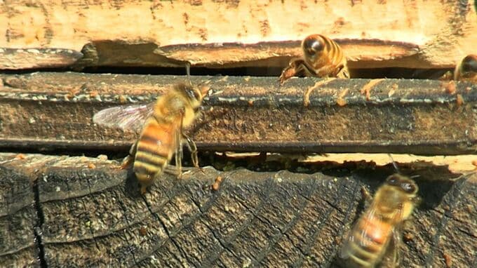 ウクライナの国の花、ヒマワリの畑に巣箱が並んでいます。実はウクライナは、人口の1パーセントにあたるおよそ40万人が養蜂業を営む「養蜂大国」。生産された蜂蜜は40か国以上に輸出されてきました。