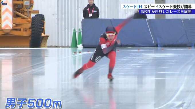 男子500メートルには、盛岡工業スケート部の植津悦典監督の息子で盛岡工業1年の植津宏斗選手が登場。