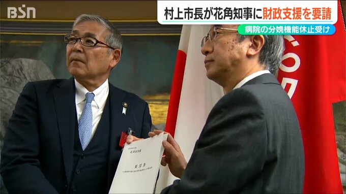 新潟県村上市で唯一分娩できる病院が3月に分娩を休止することを受けて、村上市の高橋邦芳市長が21日午後に新潟県庁を訪れ、新潟県に財政支援などを求める要請書を花角英世知事に手渡しました。