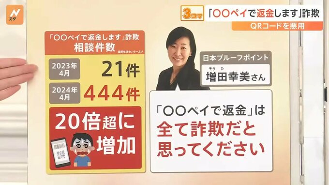サイバーセキュリティ専門家 増田幸美さんは「“〇〇ペイで返金します”は全て詐欺だと思ってください」と指摘します。