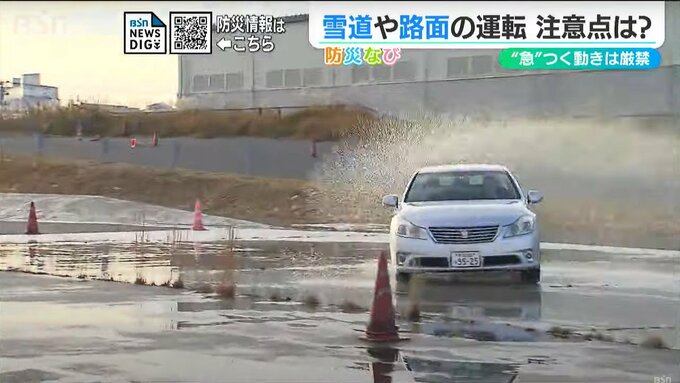【県警本部交通企画課荒木慎弥交通総合対策室長】「冬道の安全運転の基本は速度を落として車間距離を十分とることです。雪道ではなくても夜間や早朝にかけて路面は凍結しますので急のつく急発進急ブレーキ急ハンドルはひかえていただき慎重な運転をお願いしたいと思います」