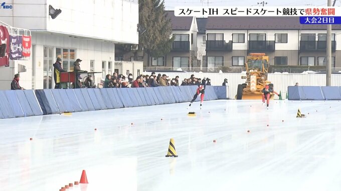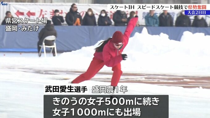 盛岡市の岩手県営スケート場で開催されているスケートインターハイのスピードスケート競技。大会2日目の22日は、女子1000メートルなどの4種目が行われ、県勢が奮闘しました。