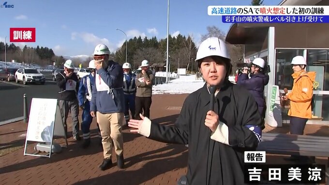 訓練が行われた岩手山サービスエリアは岩手山からも近く、噴火した際には噴石や降灰が予想されています。
