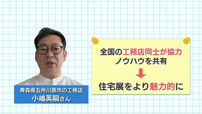 また、2009年から現在まで、5社で住宅展示場を運営している青森県五所川原市(ごしょがわらし)の工務店、小嶋英嗣(こじま えいじ)さんは「全国で同じ活動をする工務店同士が協力してノウハウを共有することで、住宅展をより魅力的に活気あるものにできる」と話します。