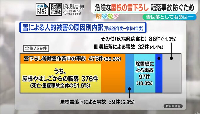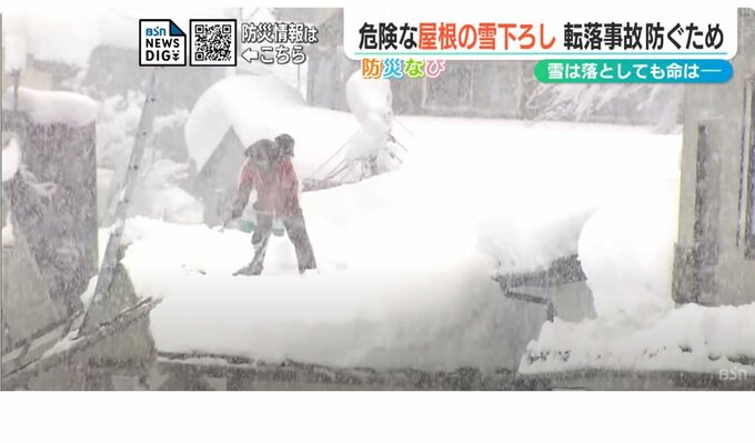 まとまった雪が降った場合、新潟県の中山間地域の人たちは屋根の雪下ろしが必要となります。ただ、この雪下ろし、かなりの危険を伴います。主に雪下ろし中の屋根からの転落事故が多いと言われていますが、転落を防ぐための対策を取材しました。