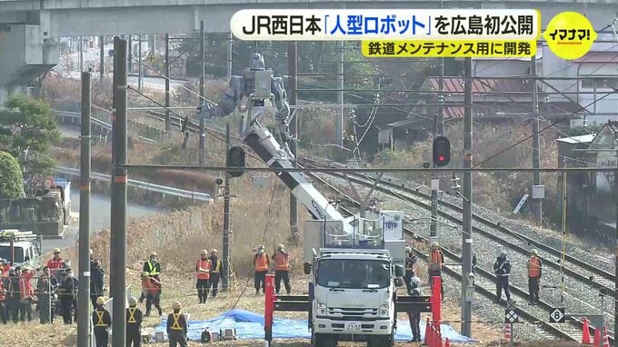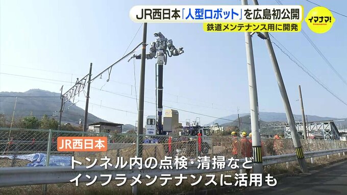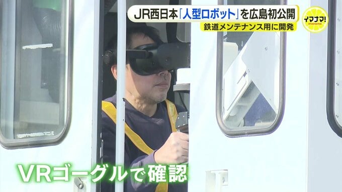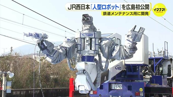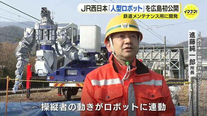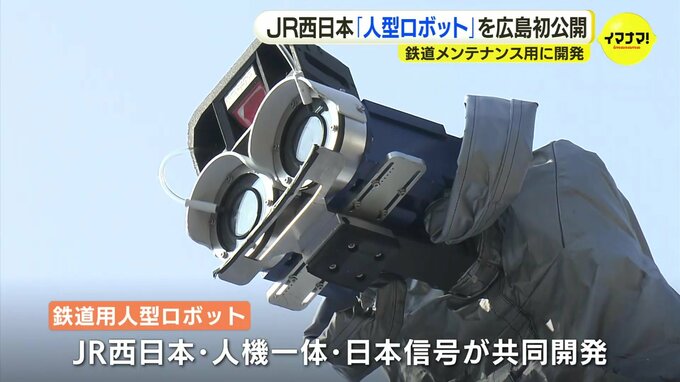 鉄道のメンテナンス用に全国で初めて開発された人型ロボットです。広島で初めてお披露目されました。
