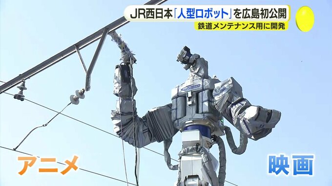 鉄道のメンテナンス用に全国で初めて開発された人型ロボットです。広島で初めてお披露目されました。二つの目がついた頭に、左右2本の腕。まるでアニメや映画の世界から飛び出してきたような動き。JR安浦駅の構内…