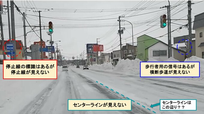 雪道での車の運転が一番怖かったです。スリップというよりも、雪や氷でセンターラインや停止線、さらには横断歩道も見えなくなっています。雪道への備えはしていても、こんなにも何もかも見えないのかというのは改めて感じました。