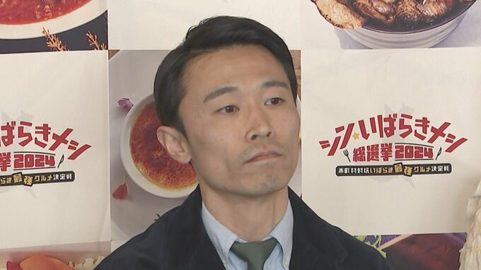 タレントの磯山さやかさん、お笑い芸人のカミナリ(竹内まなぶさん、石田たくみさん)、森三中の黒沢かずこさん、俳優の渡部豪太さんが「シン・いばらきメシ大試食会」オープニングイベントに登壇しました。