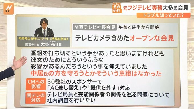 元フジテレビ専務 大多氏会見 トラブル知っていた?