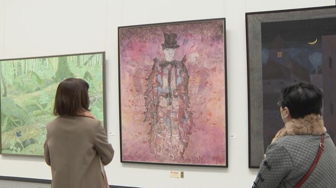 会場には日本画や彫刻、工芸美術など500点あまりの作品が展示され日本画部門で特選となった岐阜市在住の木村友彦さんの作品「時の訪問者」の前には多くの美術ファンが足を止めました。