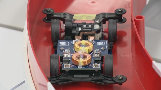 電気自動車にワイヤレスで給電する技術や倉庫の荷物を自動で運ぶロボットなど、最新の技術がずらり。