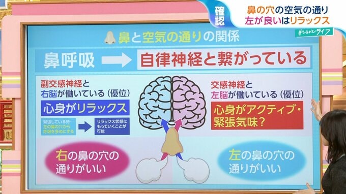 実は「緊張がほぐれている」のは、左の鼻の穴の通りがいい人。