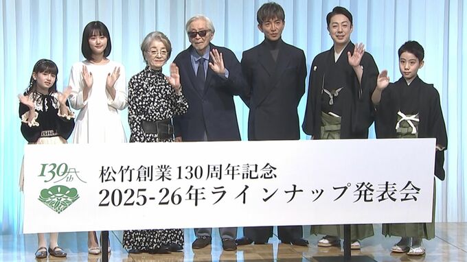 俳優の倍賞千恵子さん、木村拓哉さん、原菜乃華さん、マイカ・ピュさん、歌舞伎俳優の尾上菊之助さん、尾上丑之助さんらが「松竹創業130周年記念 2025-26年ラインナップ発表会」 に登壇。歌舞伎公演をはじめ、アニメ『不思議の国でアリスと -DiVE in Wonderland』や、映画『TOKYOタクシー』などの作品が発表されました。