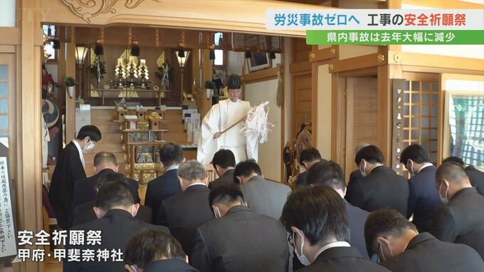 建設現場での労災事故ゼロを目指す安全祈願祭が甲府市の神社で行われました。