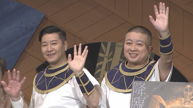 2人は、古代エジプト人をイメージした衣装で登場。昨年、長田さんがインスタグラムに投稿したことでSNSを中心に話題になった、チョコプラの2人にそっくりな古代エジプト人の彫像が紹介されました。