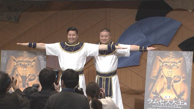 お笑いコンビ・チョコレートプラネットの長田庄平さん、松尾駿さんが、「ラムセス大王展 ファラオたちの黄金」記者発表会に出席。エジプト史上“最も偉大な王“と称されるラムセス大王(ラムセス2世)にまつわる至宝を180点集めた、エジプト政府公認の展覧会をPRしました。