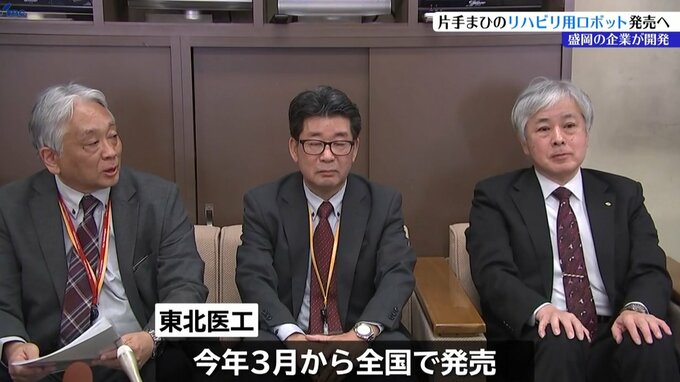 盛岡市の企業が開発した、片手にまひのある患者向けのリハビリ用ロボットが3月に全国で発売されることになりました。
