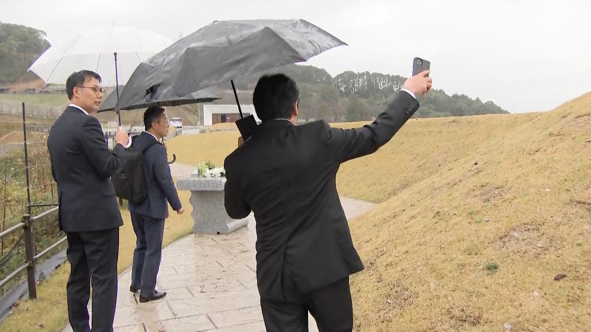 この日は、東京、大阪からやってきた霊園の担当者が雨の中、熱心に質問していました。