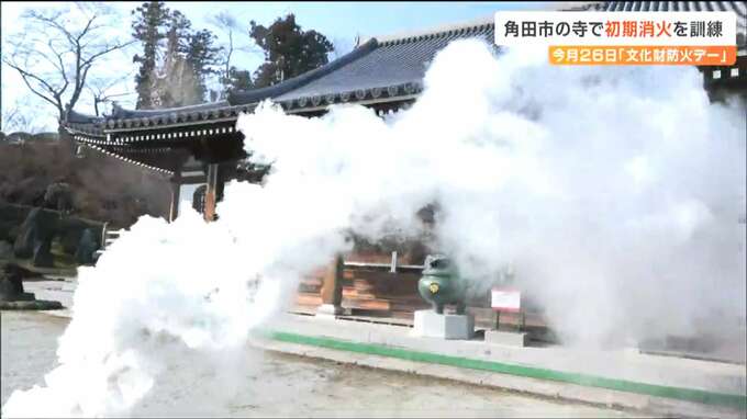 1月26日は文化財防火デーです。宮城県角田市の寺で消防訓練が行われ参加した人たちが、初期消火の手順などを確認しました。角田市の長泉寺(ちょうせんじ)で行われた訓練には、地域住民や消防の関係者などおよそ3…