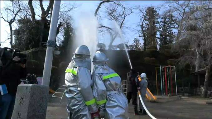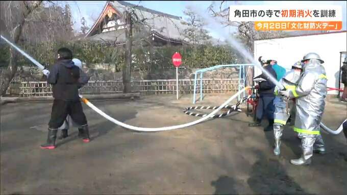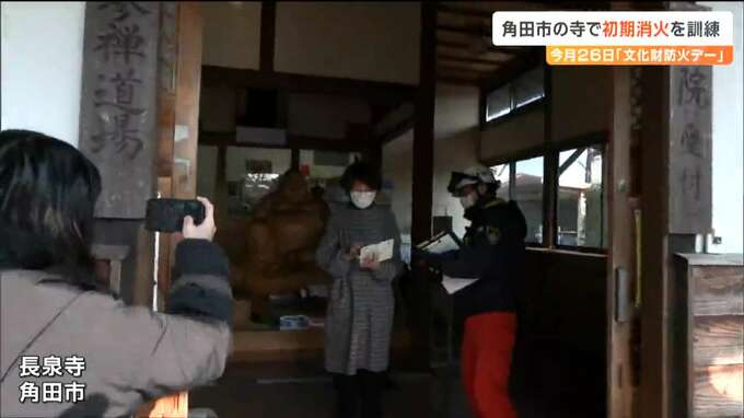 宮城県角田市の寺で消防訓練が行われ参加した人たちが、初期消火の手順などを確認しました。