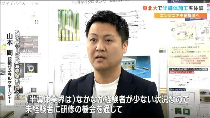 東北大学で開かれた半導体の加工作業の研修会には、宮城県と岩手県で働く派遣会社のエンジニア5人が参加しました。