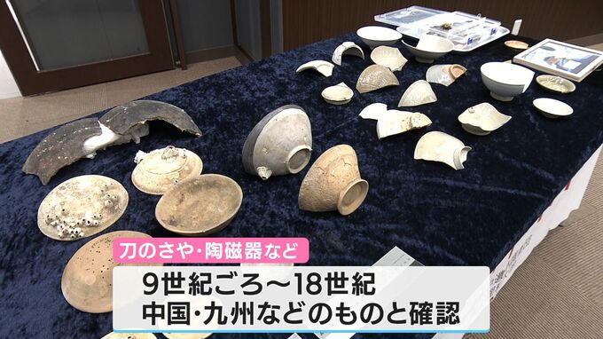 今回の調査では、以前引き揚げられていた刀の鞘や陶磁器などの年代を測定。その結果、9世紀ごろから18世紀のものがあり、地域としても中国大陸や九州地方など時代・産地ともに多様な資料が沈んでいたことが分かりました。