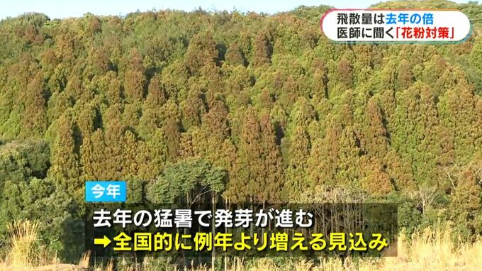 日本気象協会によりますと、県内では2月中旬から飛散が始まり、飛散量は例年の2倍近く、去年の3倍近くになると予想されています。